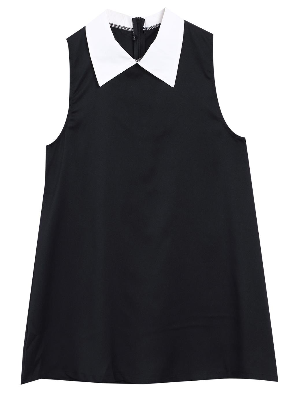 Take a classic like the little black dress and add a Pilgrim collar and what do you get? This dress! Featuring a sleeveless flowy silhouette and a back zipper, you'll be sure to make a statement! Add a some jewelry for an extra pop!