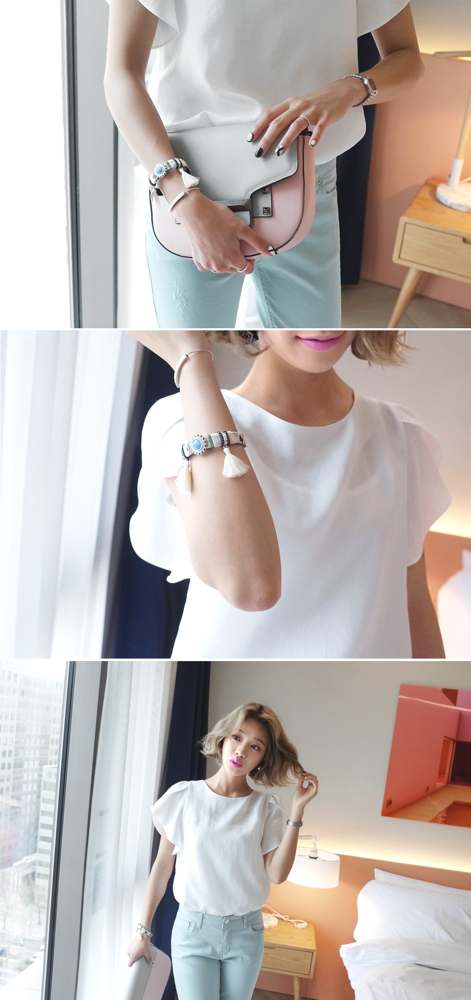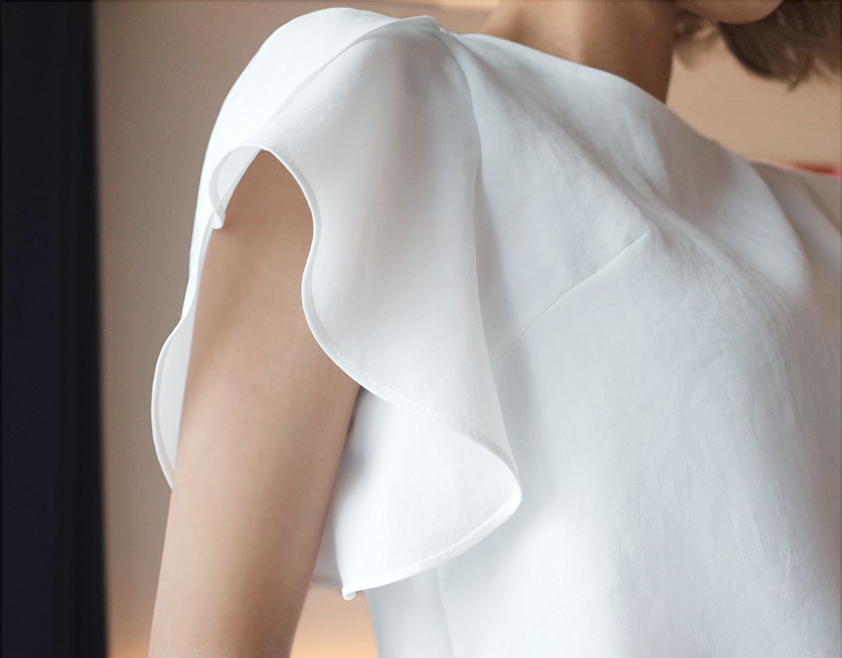 Fitted blouse featuring tulip style sleeves. Great for going to work or a date!