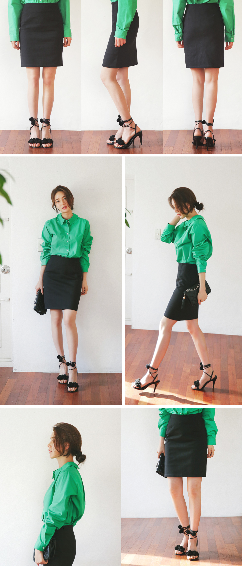 Look perfectly polished in this high waisted pencil skirt. Great for work or a date. Features a invisible side zipper and is lined.