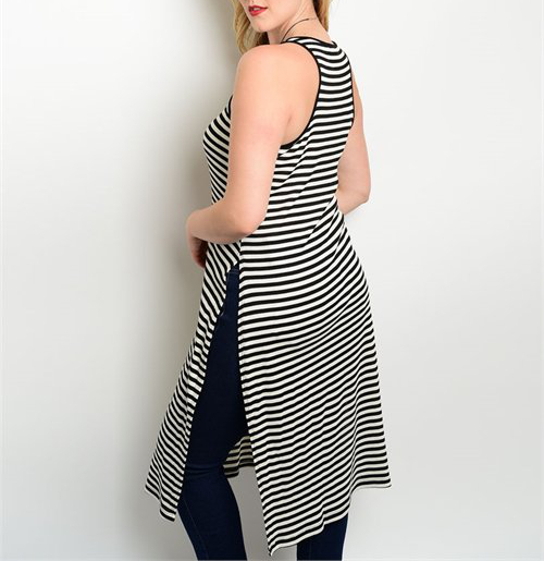 Bring your inner rocker out with this black & white striped tank. Great as a beach cover-up or wear it with a pair of leggings. Either way you'll be sure to look great!