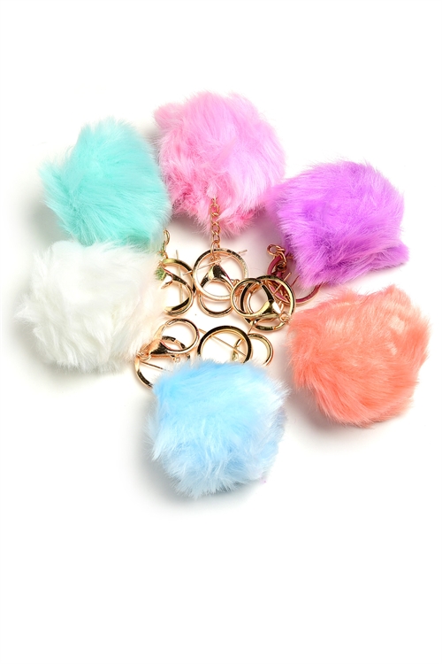 Add a little extra something to your keys or bag with a super soft and fuzzy faux fur pom pom keychain, complete with lobster clasp and ring closures.