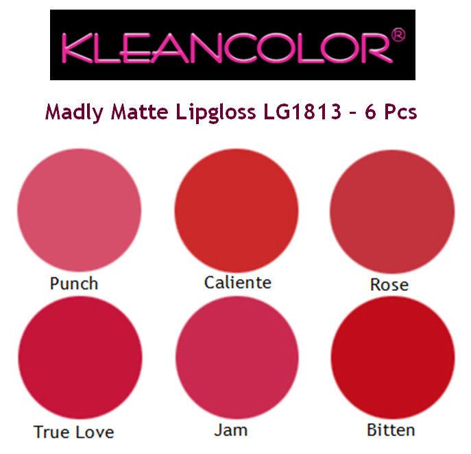 Madly Matte Lipgloss provides rich color in a matte finish for all day wear without drying. It goes on as a highly pigmented liquid and dries to a smooth matte finish. Lips are colored in velvety perfection that lasts. So grab one and go! You're off to a smooth start with Madly Matte Lip Gloss from Kleancolor.